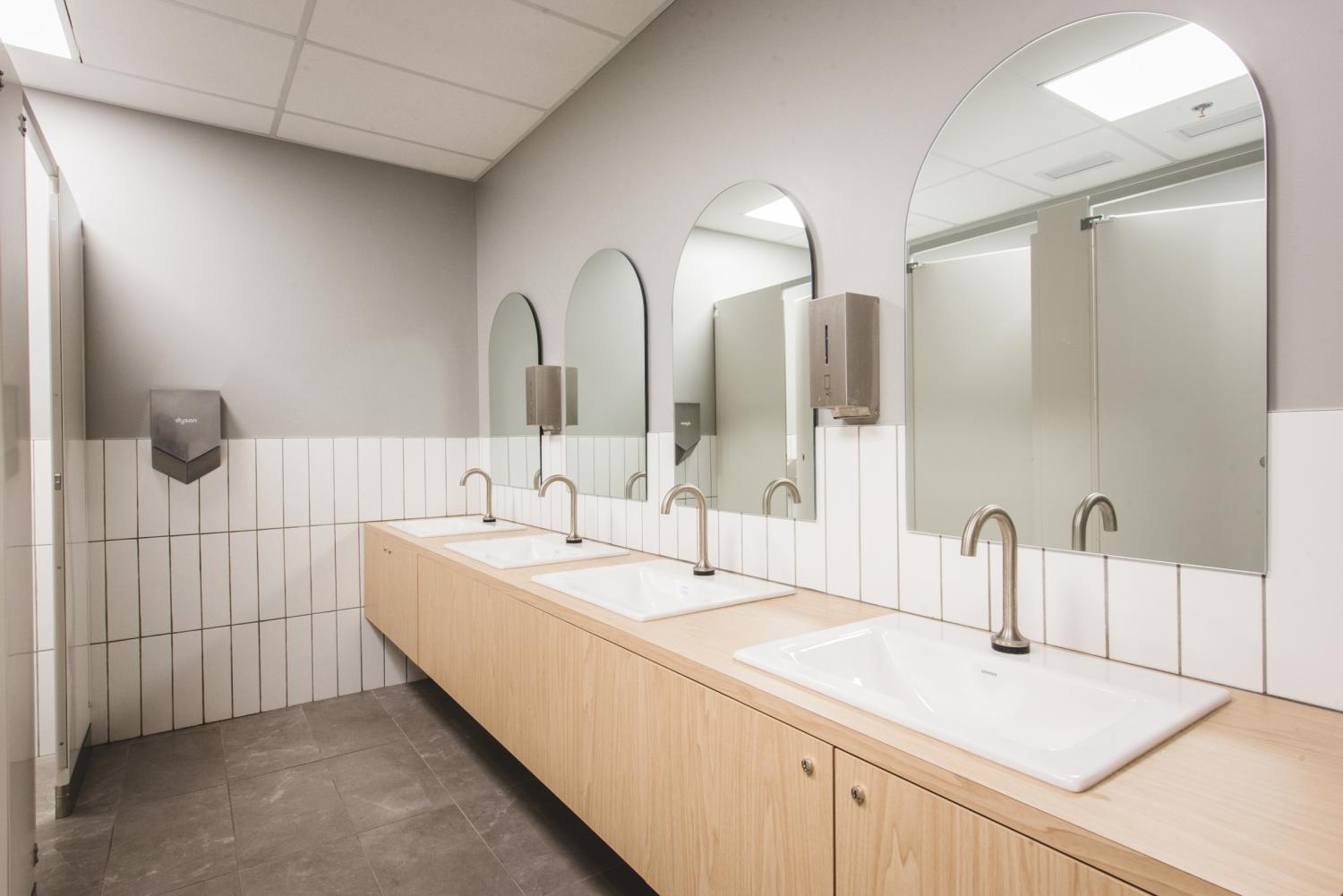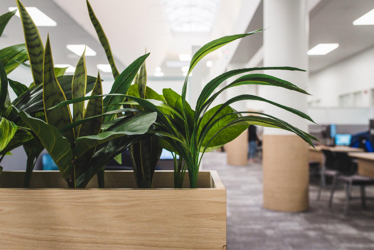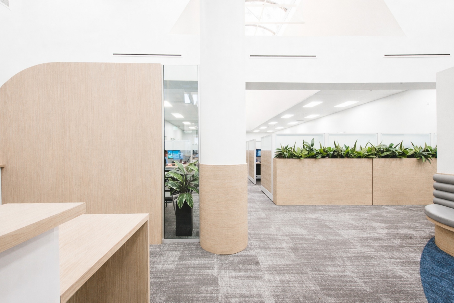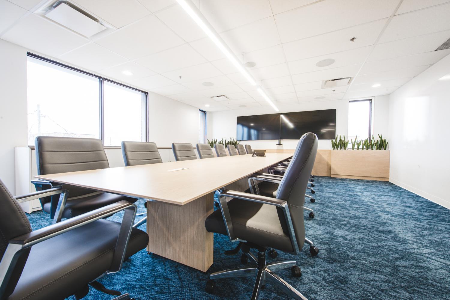 Les aménagements du Call Center Mont-Royal misent sur une optimisation maximale de l’espace afin d’intégrer un grand nombre de postes de travail, sans compromettre la qualité de l’environnement. L’architecture, marquée par un effet de mezzanine, organise les volumes et apporte du rythme à l’espace, tandis que les puits de lumière baignent l’ensemble de lumière naturelle, valorisant le lieu avec clarté et légèreté.